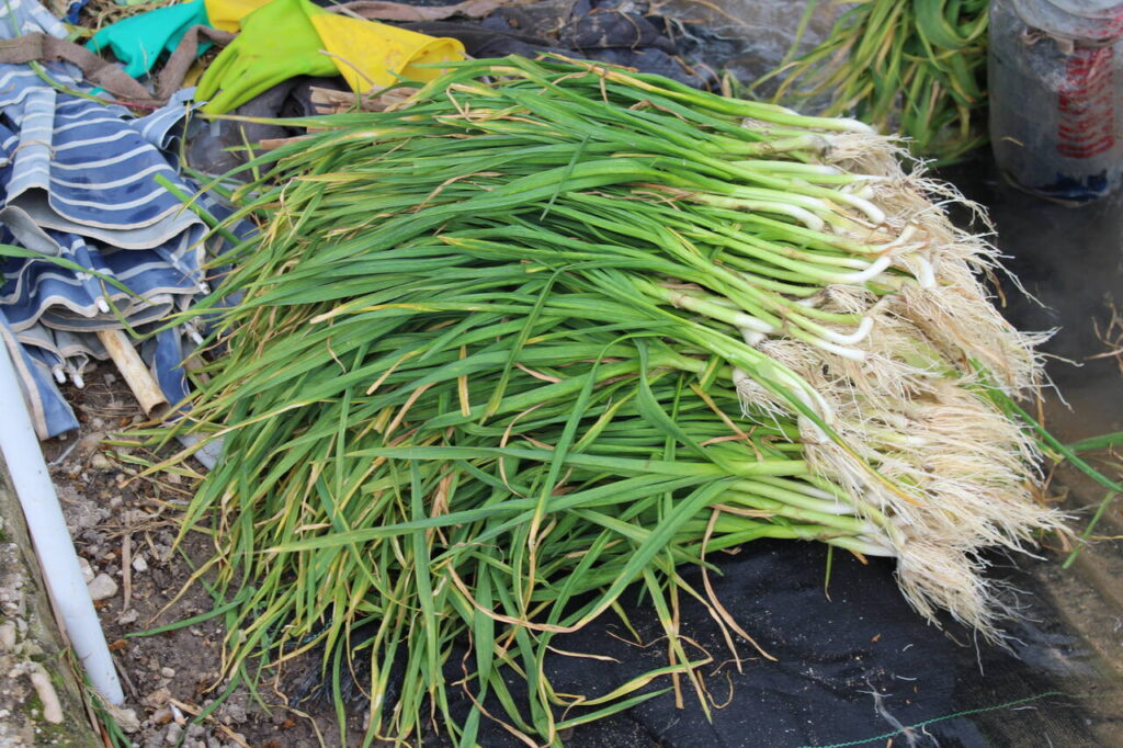 Los productores hasta hace bien poco cultivaban la variedad autóctona Camallarga, pero el cambio climático le ha pasado factura. Provocaba últimamente que los ajos se resecaran, tuvieran un calibre inferior al habitual y las hojas tuvieran manchas y un color amarillento debido al calor y la proliferación de hongos. Ahora, han optado por una variedad proveniente de Castilla-La Mancha que están empezando a testar para ver si cambian los resultados, aunque ya han detectado que se conserva bien en la venta de proximidad, pero no resulta muy útil si tiene que enviarse a trayectos largos.