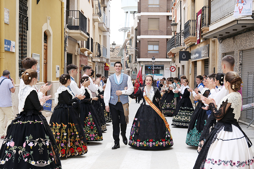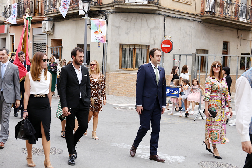 Por la tarde se celebró una solemne procesión presidida por el patrón de Cheste, la Reina de la vendimia y su Corte de Honor; con la compañía de representantes de las fallas locales y de la corporación municipal.