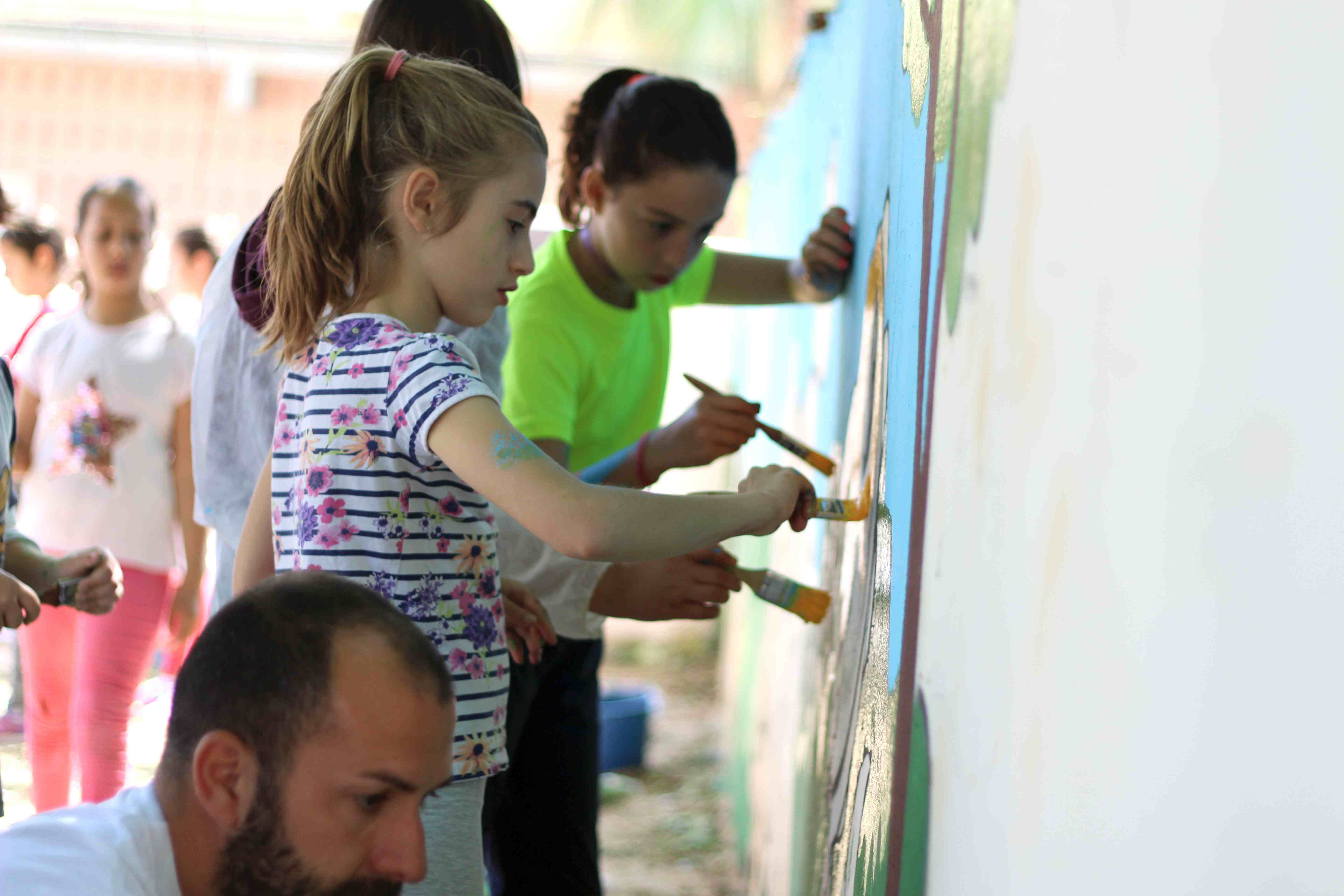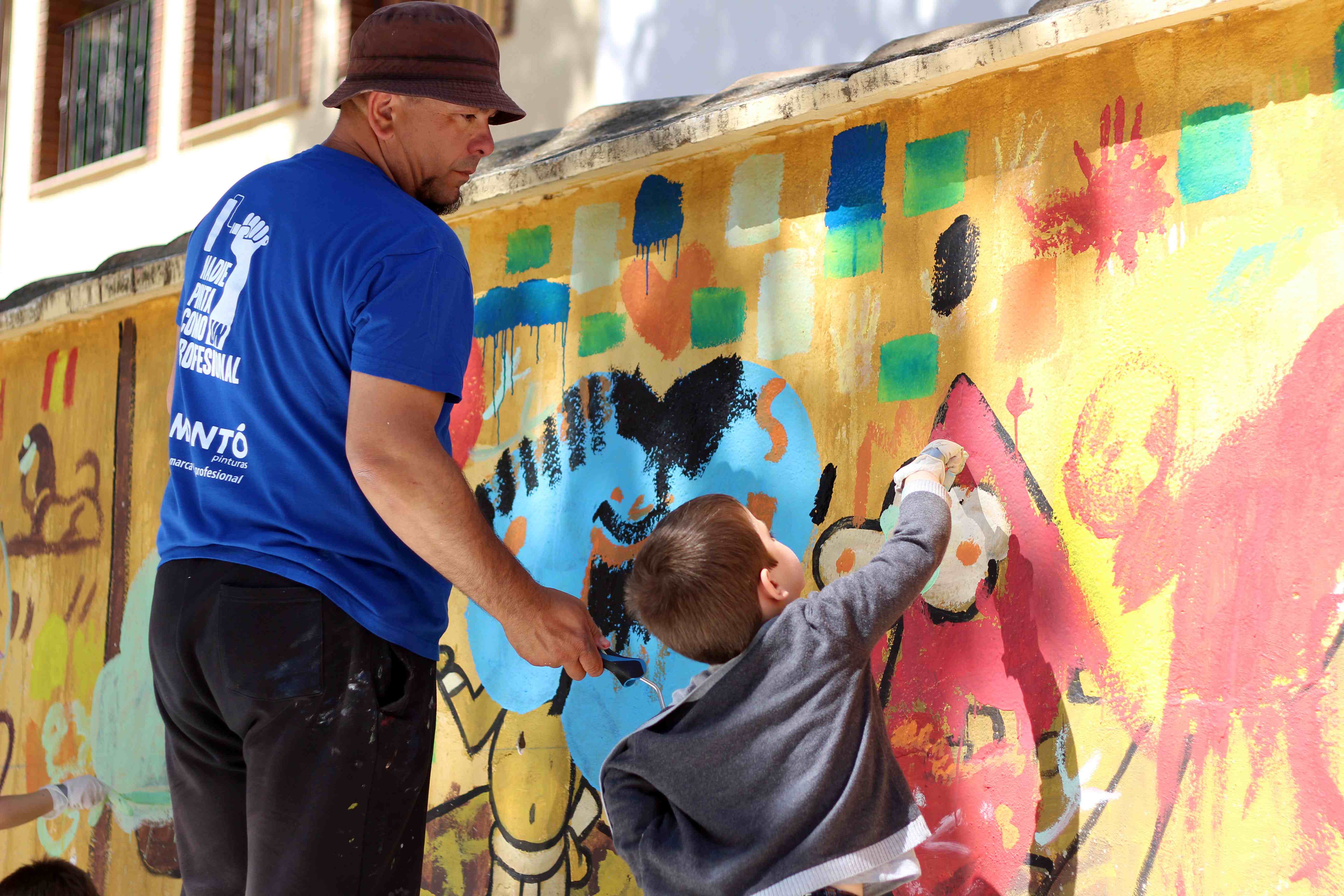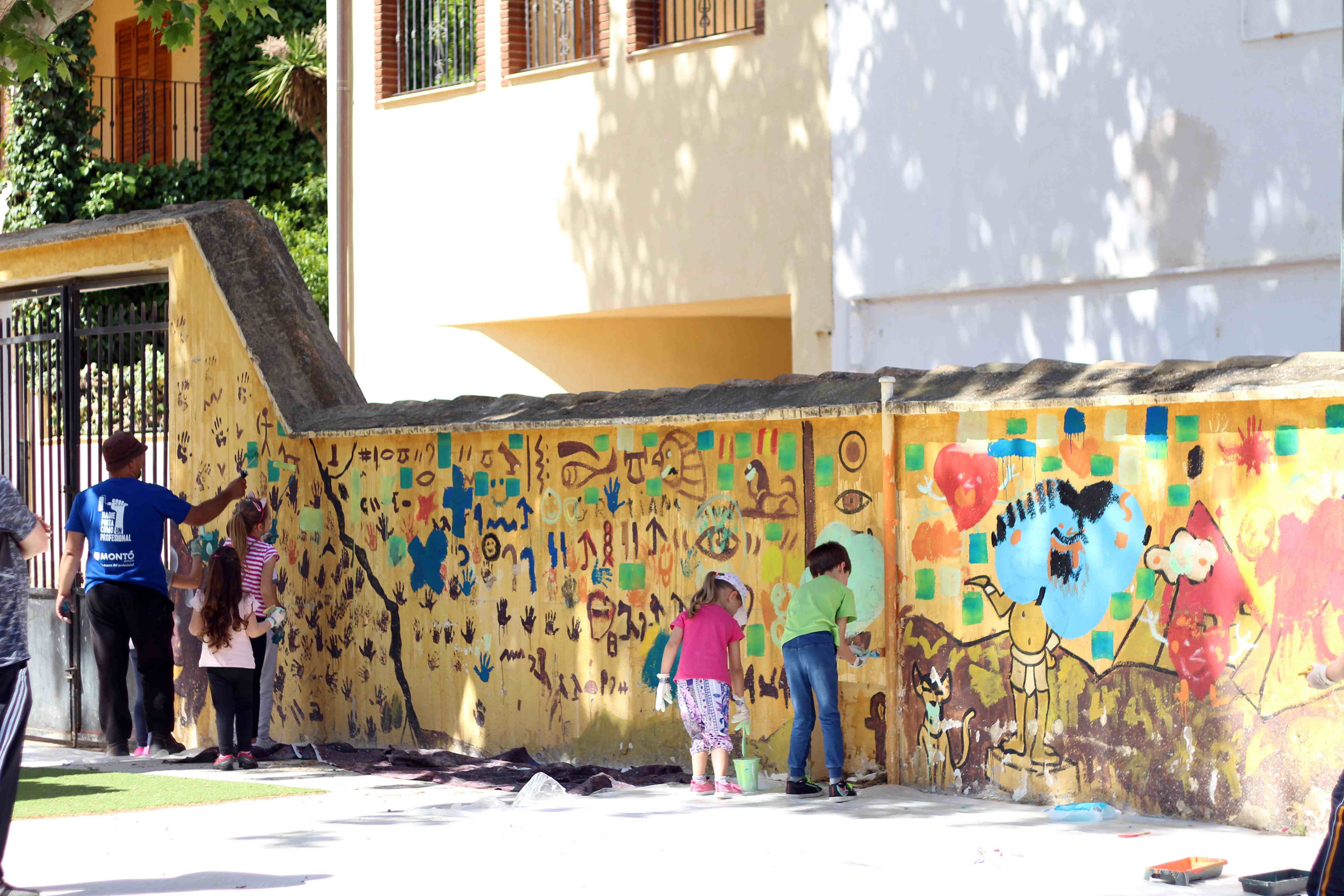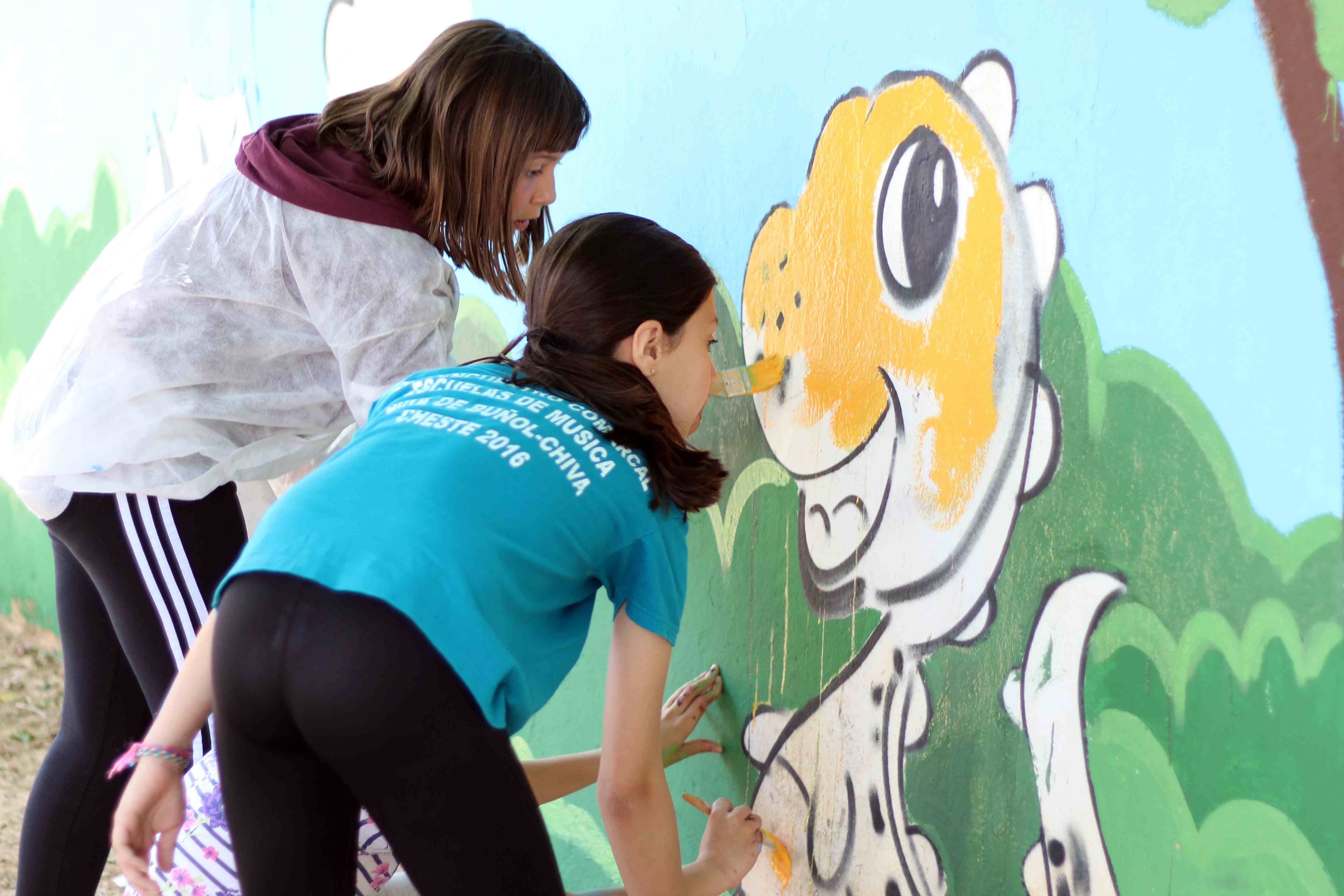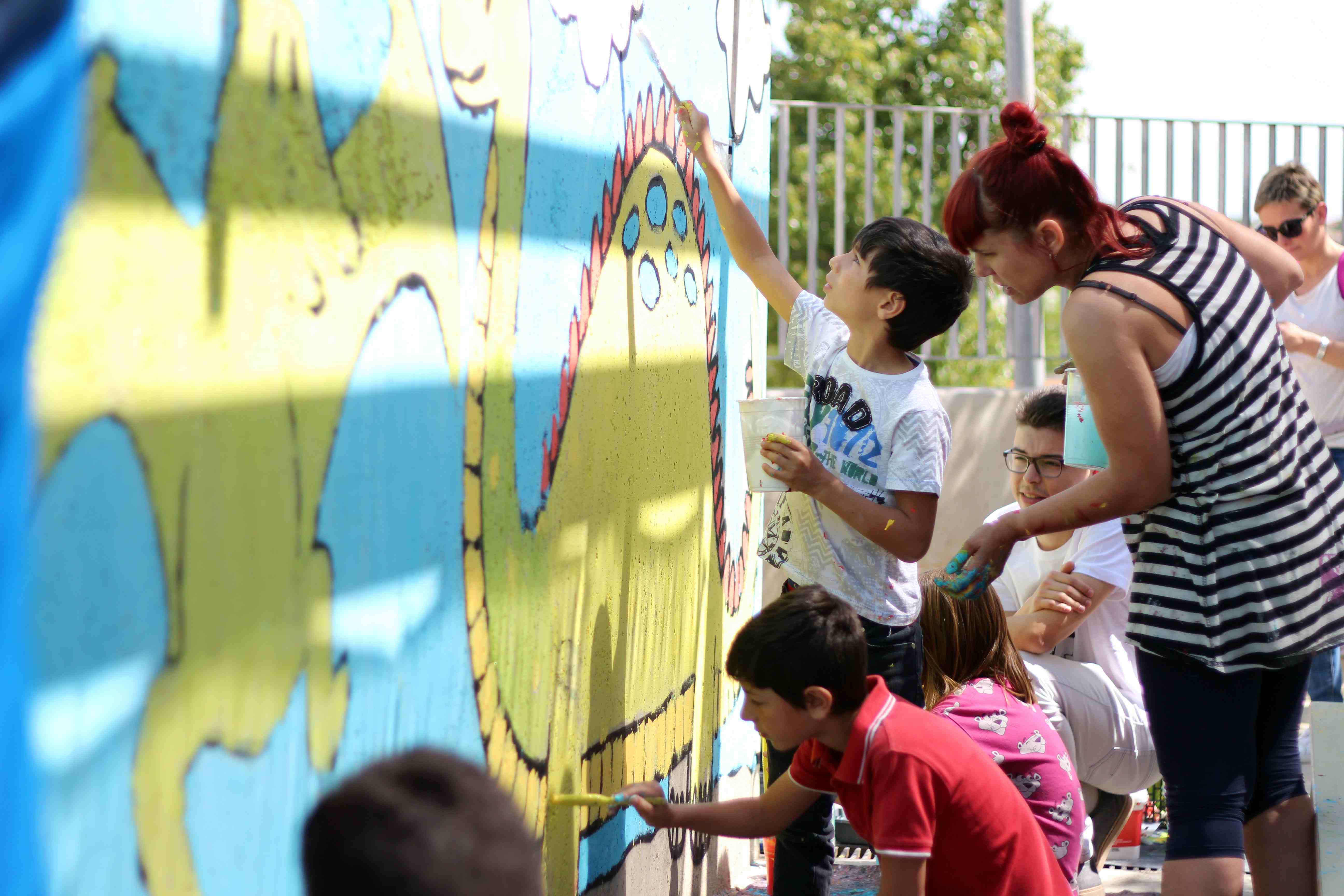 Durante toda la mañana, los niños y niñas participantes, guiados por artistas de Wall Arttitude, experimentaron con las pinturas y crearon murales en las paredes de sus centros. En el C.E.I.P. nº 3 y el C.E.I.P. Vicente Blasco Ibáñez los dinosaurios fueron los protagonistas, mientras que el C.E.I.P. Francisco Giner de los Ríos la temática era “Smile”, con lo que Flug y Toni Espinar, al cargo de ese taller, propusieron a los pequeños utilizar mucho color y transmitir toda su alegría a esa obra colectiva.