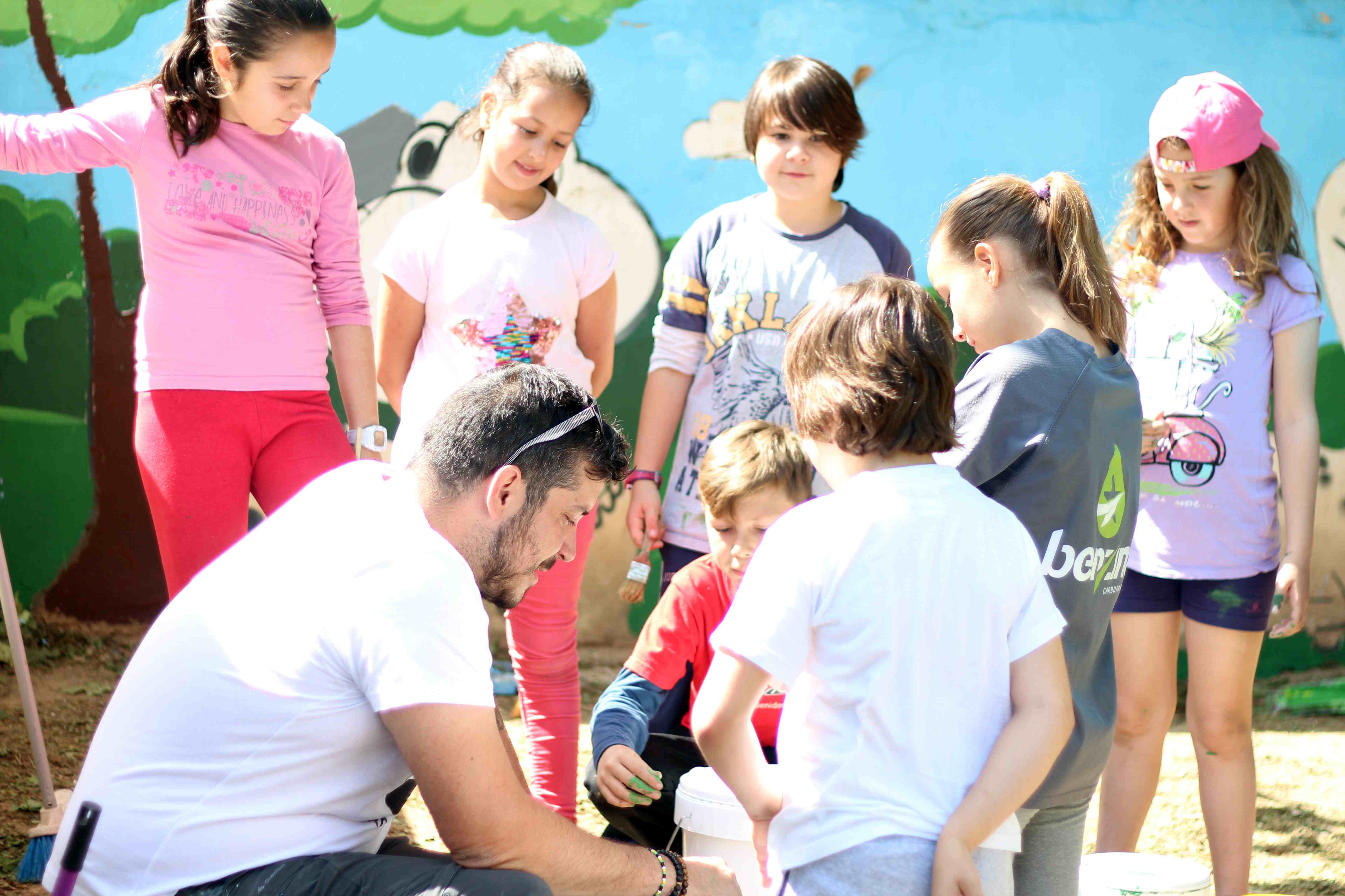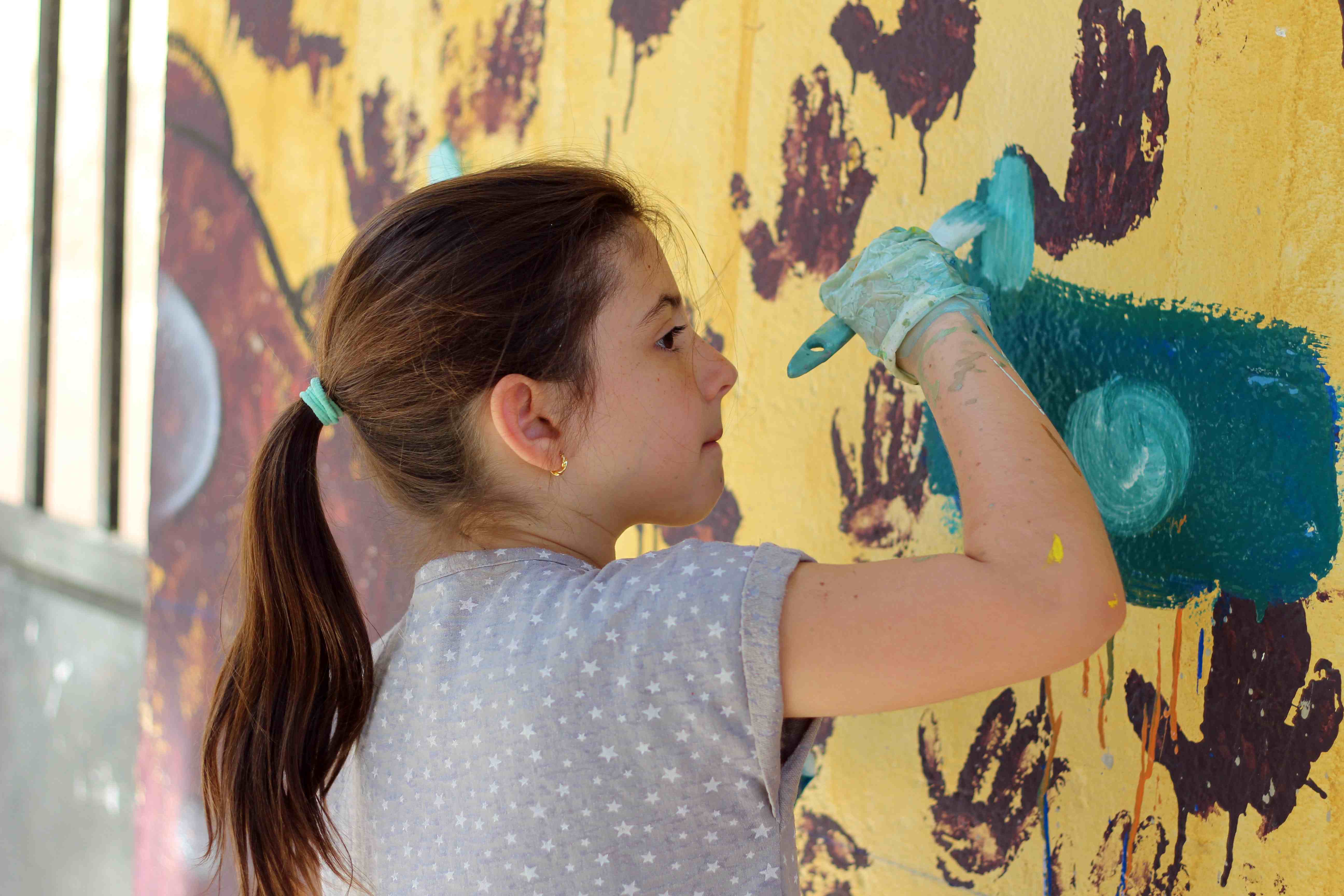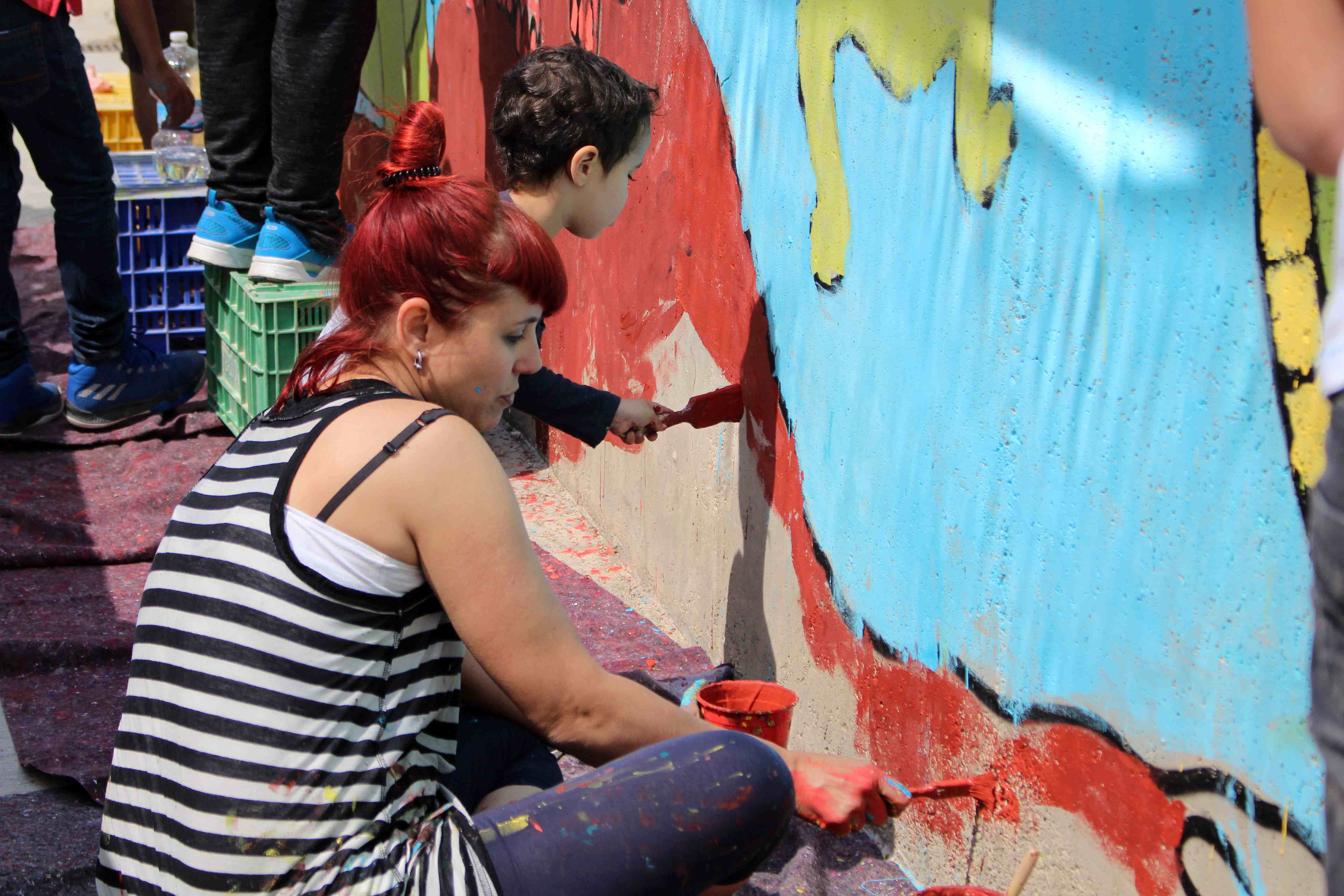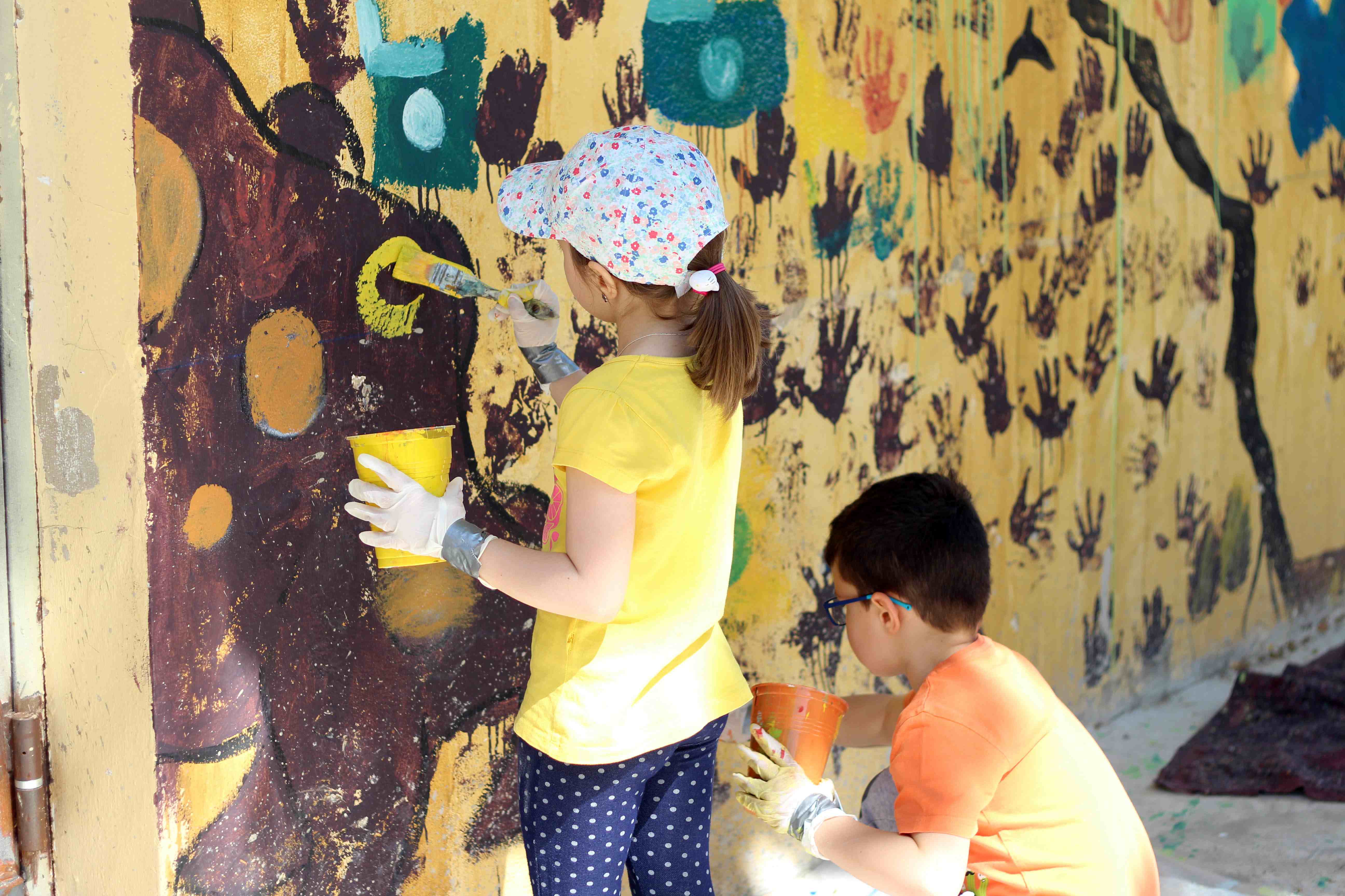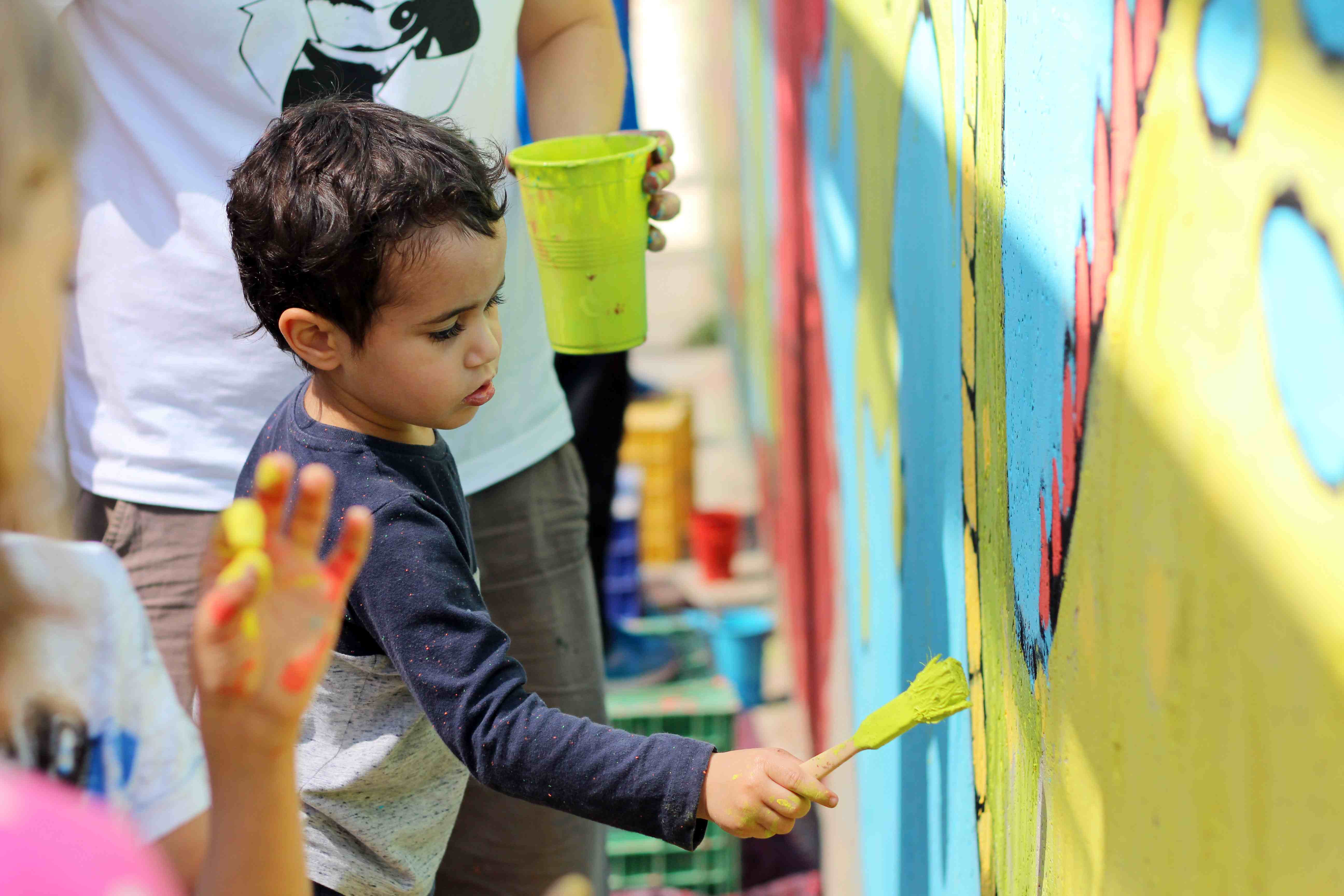 Durante toda la mañana, los niños y niñas participantes, guiados por artistas de Wall Arttitude, experimentaron con las pinturas y crearon murales en las paredes de sus centros. En el C.E.I.P. nº 3 y el C.E.I.P. Vicente Blasco Ibáñez los dinosaurios fueron los protagonistas, mientras que el C.E.I.P. Francisco Giner de los Ríos la temática era “Smile”, con lo que Flug y Toni Espinar, al cargo de ese taller, propusieron a los pequeños utilizar mucho color y transmitir toda su alegría a esa obra colectiva.
