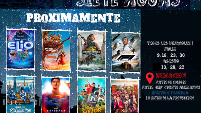 El Ayuntamiento de Siete Aguas pone en marcha un año más su tradicional Cine de Verano, una cita imprescindible en el calendario cultural estival de la localidad. Las proyecciones tendrán lugar en el patio del CEIP Vicente Aleixandre, al aire libre y bajo las estrellas, ofreciendo una propuesta perfecta para disfrutar del cine en un ambiente relajado y familiar.