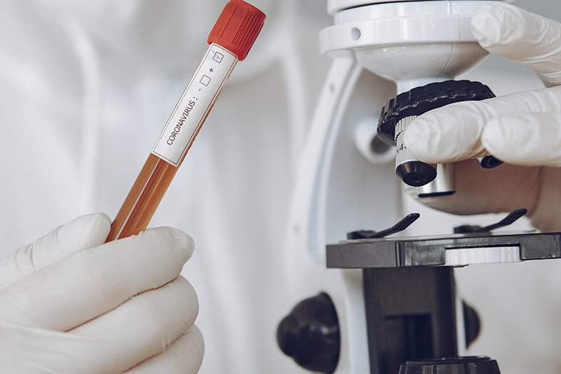 Man in protective suit and glasses in studio