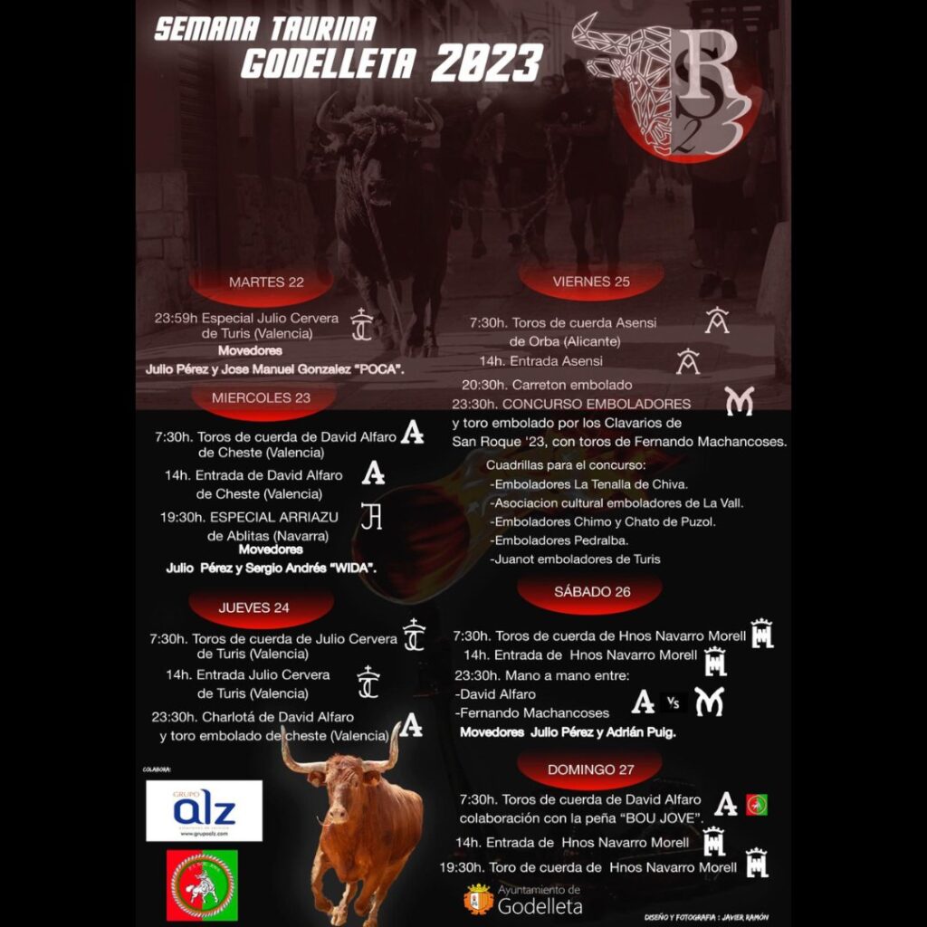 Desde este martes, día 22, y hasta el 27 de agosto, las vecinas y vecinos de Godelleta se sumergen en la semana taurina. Estos son los días y los actos programados: