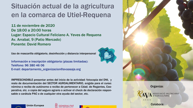 Para dar a conocer las novedades de la Política Agrícola Comunitaria -PAC- 2021, la organización agraria AVA-ASAJA ha convocado una jornada que se celebrará mañana miércoles de 18 a 20 horas en el Espacio Cultural Feliciano A. Yeves, de Requena.