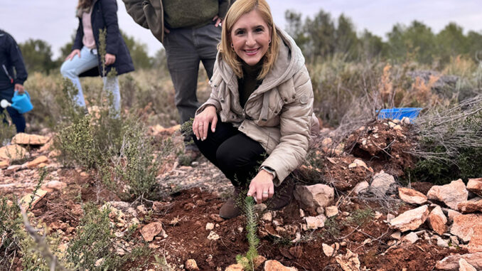 Salomé Pradas participa en la plantación de 300 árboles autóctonos para colaborar en la reforestación de la zona afectada por el incendio de Chulilla en 2012