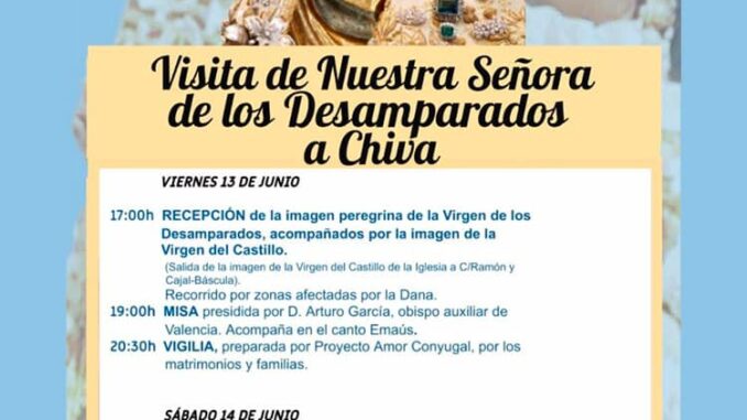La imagen peregrina de la Virgen de los Desamparados recorrerá a partir de este viernes y durante el fin de semana las zonas afectadas por la DANA en Chiva