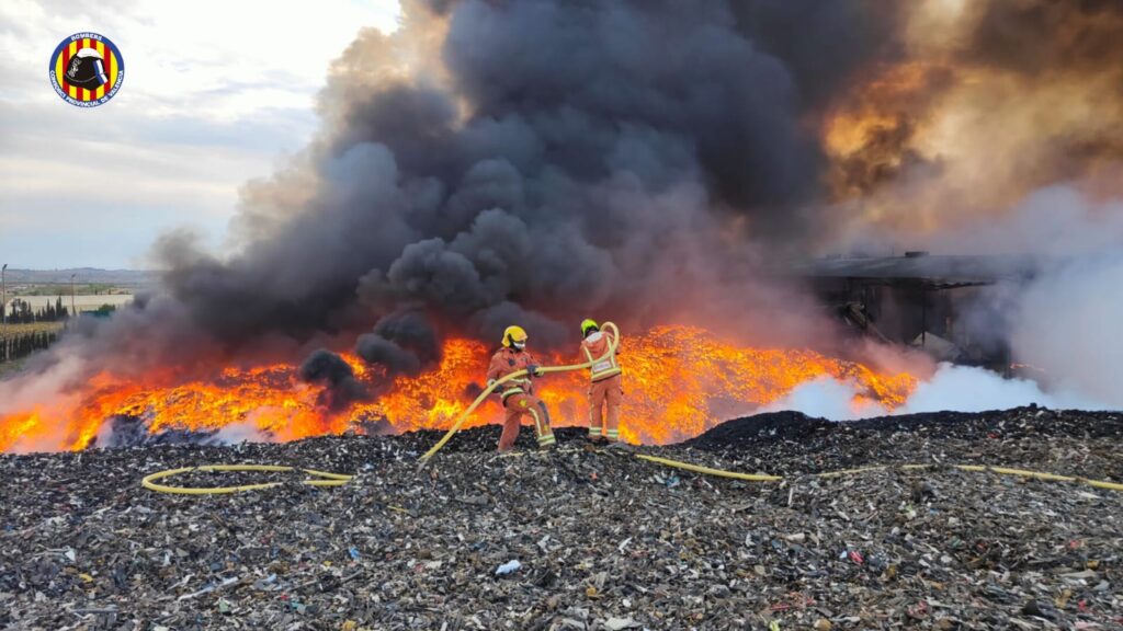 A última hora de la tarde, los bomberos del Consorcio seguían trabajando en el incendio de la planta de reciclaje de San Antonio, declarado a las 16,00 horas y donde actúan seis dotaciones de bomberos y tres unidades de mando del Consorcio, así como un medio aéreo de GVA que en estos momentos ya se han retirado.