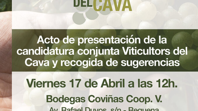La coalición de Unió de Pagesos, Joves Agricultors i Ramaders de Catalunya y Dominio de la Vega de Requena (Valencia) presenta candidatura a las elecciones de la DOP Cava del 7 de mayo.
