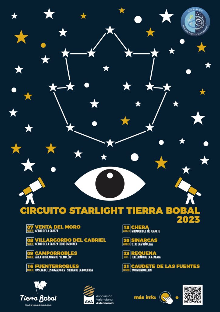 El pasado año Tierra Bobal lanzó su «Circuito Starlight” con el objetivo de dar a conocer esta nueva actividad turística y natural. Este año, el Circuito Starlight Tierra Bobal lanza una nueva edición con la actividad de observación del cielo nocturno, con telescopios y monitores de la Asociación Valenciana de Astronomía (AVA) de forma gratuita. La observación del cielo nocturno es un privilegio, pues nos da a conocer los secretos que el cielo esconde y la oportunidad de poder contemplar la gran variedad de astros diferentes que contiene (estrellas, constelaciones, nebulosas y cúmulos estelares). Las actividades son gratuitas y se ofrecen en diferentes localizaciones.